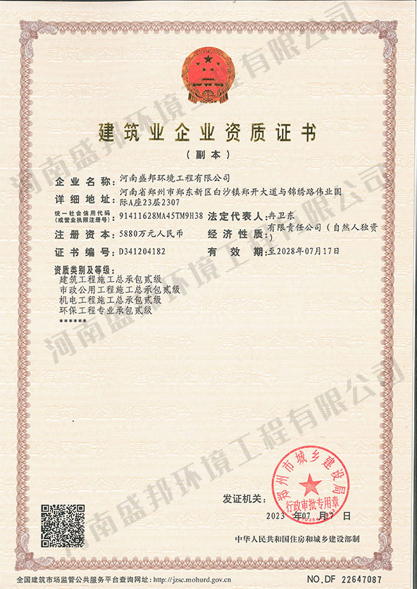 河南盛邦環境工程有限公司河南盛邦環境工程有限公司成立于 2018 年,注冊資金 5880 萬元, 是專注于環保產品研發、生產、銷售、施工、運營于一體的服務型企業,more